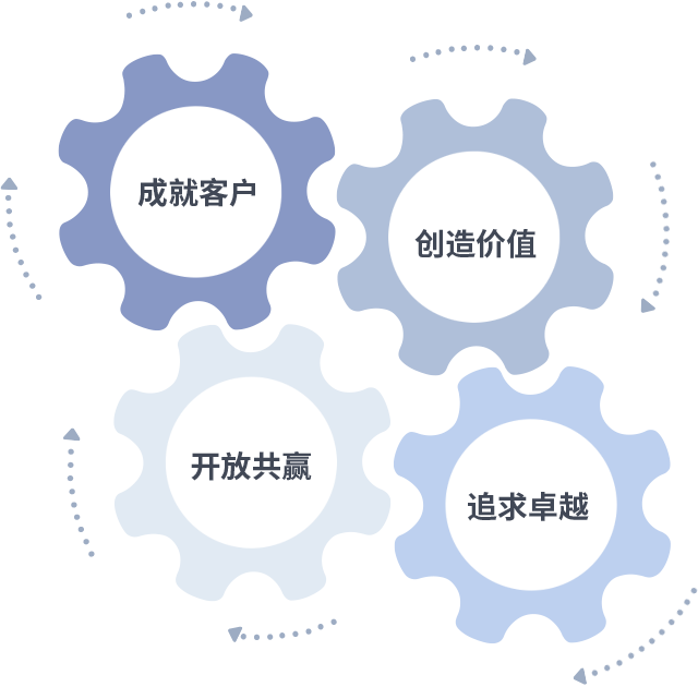 成就客户是一切决策的出发点,创造价值是衡量所有工作的标准,追求卓越是意大利贵宾会做事做人的态度,开放共赢是意大利贵宾会的格局也是最终的结果。价值观的齿轮环环相扣,推动着组织里的每个人不断向前。